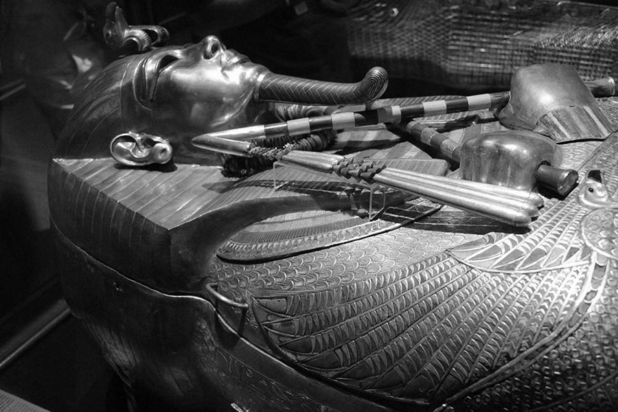 Мало известный как фараон, Тутанхамон стал знаменит благодаря сенсационному открытию в 1922 году его почти не потревоженной гробницы. В ней были обнаружены тысячи различных предметов, включая позолоченную колесницу, сиденья, ложа, светильники, драгоценные украшения, одежду, письменные принадлежности и даже пучок волос его бабки. Это открытие дало миру наиболее полное представление о великолепии древнеегипетского двора.