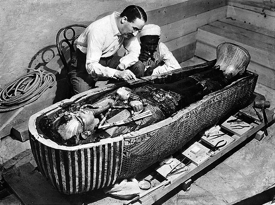 Гробница Тутанхамона была обнаружена британской археологической экспедицией во главе с Говардом Картером и Джорджем Гербертом, 5-м графом Карнарвоном – богатым английским аристократом и коллекционером древностей, финансировавшим раскопки.