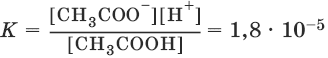 Применим закон действия масс к равновесию между ионами и молекулами в растворе слабого электролита, например уксусной кислоты: