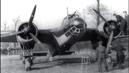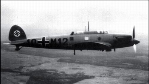 Самолет-разведчик Не-45 «10+А11» командира эскадрильи Aund.Gr. 121 гауптмана Эдгара Штенцера (Edgar Stentzer), аэродром Нойхаузен