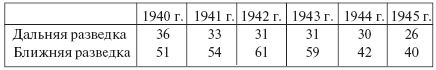 В течение первых трех лет войны число эскадрилий ближней разведки в составе Люфтваффе неуклонно росло и достигло своего пика в 1942 г. Однако затем в 1944 г. оно уменьшилось на одну треть. С эскадрильями же дальней разведки была иная картина. Максимальное их количество было в 1940 г., затем оно немного сократилось и потом в течение трех лет оставалось почти неизменным.