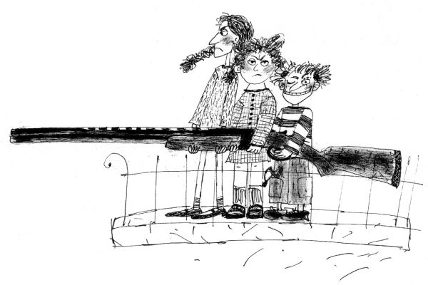 – А давайте, – всколыхнулись мы с Манькой и бросились наперегонки за ружьем. Вытащили с антресолей и притащили на балкон. Каринка уже заняла огневую позицию на полу за решеткой. Мы подползли к ней на брюхе и передали ружье.