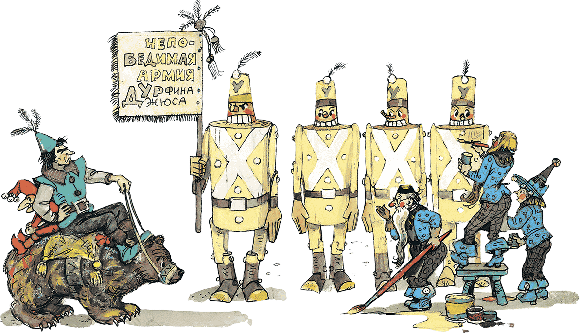 Сбоку ехал на медведе Урфин Джюс и любовался своим воинством.