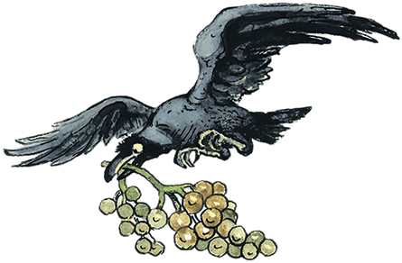 Утром путники заметили, что вороны нет. Но им недолго пришлось гадать, куда она девалась. Птица прилетела с новой кистью винограда в клюве.