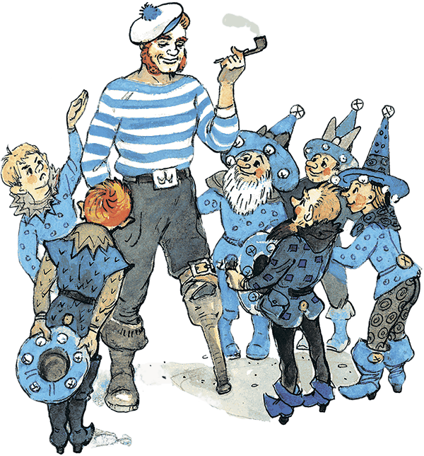 И как и в прошлый раз, из-за деревьев показались самые забавные и милые человечки, каких только можно вообразить. Элли узнала Жевунов, одетых в голубые бархатные кафтаны, узкие панталоны и ботфорты. На головах Жевунов были остроконечные шляпы с хрустальными шариками на макушке и нежно звеневшими бубенчиками под широкими полями.