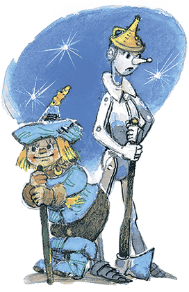 Железный Дровосек наточил топор, тщательно смазал все суставы и доверху наполнил масленку лучшим маслом. Страшила попросил набить себя свежей соломой. Элли раздобыла кисточку и краски и заново подвела ему глаза, рот и уши, поблекшие от дорожной пыли и яркого солнца. Флита наполнила корзинку Элли вкусными кушаньями. Она расчесала шерстку Тотошки и привязала ему на шею серебряный колокольчик.