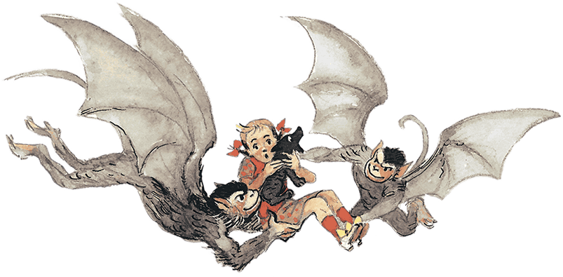 И небо потемнело от стаи Летучих Обезьян, которые неслись к дворцу Бастинды на своих мощных крыльях. Предводитель стаи Уорра подлетел к Бастинде и сказал: