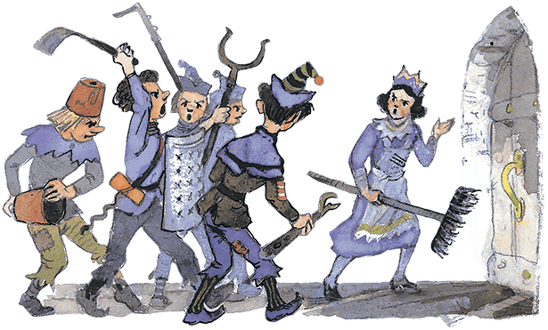 На следующий день кухарка принялась за дело. Слуги были очень запуганы Бастиндой, и нелегко было уговорить их выступить против волшебницы. Однако Фрегоза сумела убедить кое-кого из дворцовой охраны, и посвященные в заговор Мигуны стали готовиться.