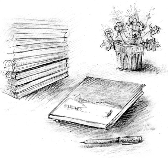 В маминой спальне темно, хотя в углу горит тусклая лампа и всюду разбросаны книги.