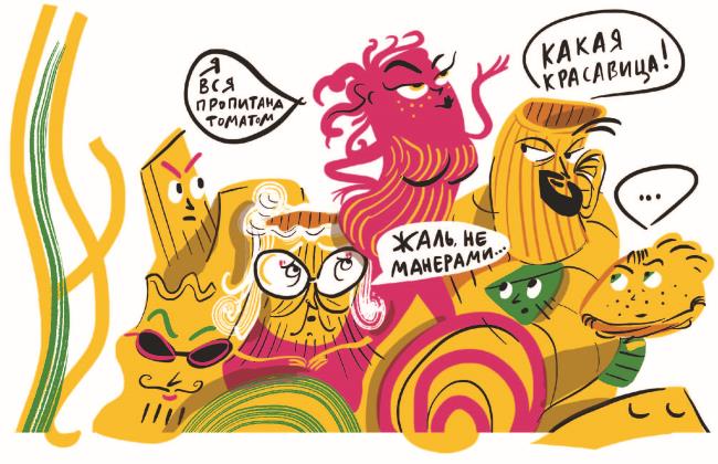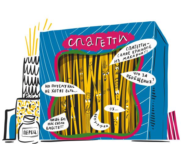 – Я не рыжая, а цвета спелого томата, – взвизгнула от возмущения макаронина. – И почему мы лежим на одной полке с макаронами из другой ценовой категории? – обратилась она к своей соседке.