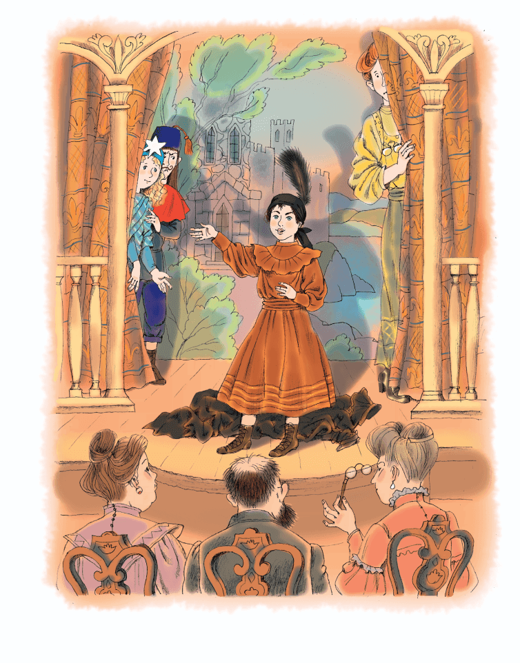 Уж не знаю, стильно или нет (надо будет спросить у папы, что это еще за «стильно» такое!), но, взглянув в большое зеркало, я себе самой ужас до чего не нравлюсь! В необъятном капоте тети Жени я похожа на длинный черный восклицательный знак, а страусовое перо кажется воткнутым в мою голову, как в чернильницу! Ходить в тети-Женином капоте невозможно – наступаешь сама себе на полы и спотыкаешься. Пока, в ожидании выхода на сцену, я подбираю со всех сторон фалды капота – так Юзефа подтыкает юбку перед тем, как мыть пол, – и держу этот шлейф руками.