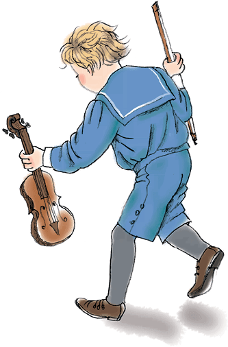 Вовик усердно пиликает. Но в середине пьески, очевидно дойдя до того фа, которое у него «не выходит», Вовик умолкает, беспомощно озирается и, тряся головой, кричит: