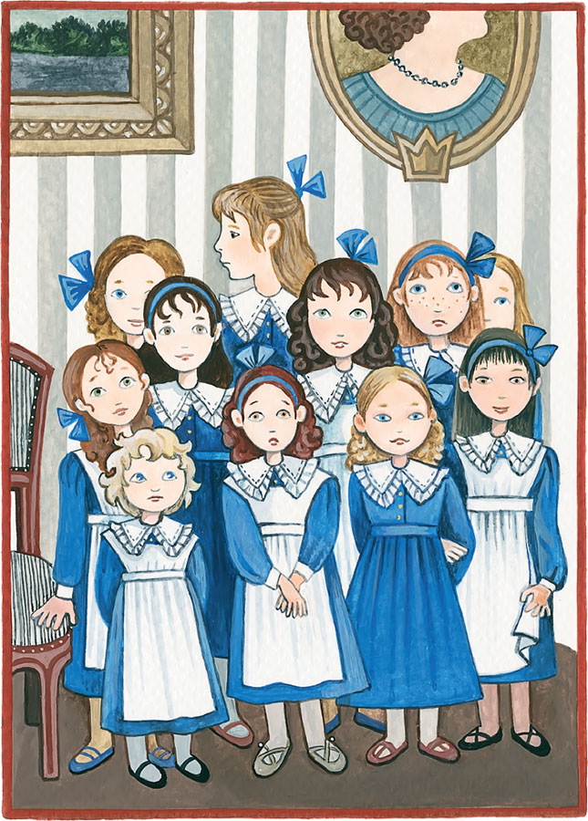 Когда Мариетта одела Сару в тёмно-синее форменное платье и завязала ей волосы темно-синей лентой, девочка подошла к Эмили, которая сидела на своём собственном стуле, и положила около неё книгу.