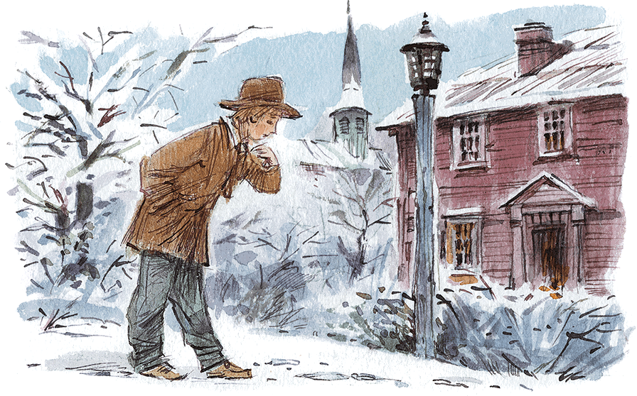 Я вышел в сад и перебрался по ступенькам через высокий деревянный забор. На земле было с дюйм только что выпавшего снега, и я увидел на снегу следы: кто-то шел от каменоломни, потоптался немного около забора, потом пошел дальше. Странно было, что он не завернул в сад, простояв столько времени у забора. Я не мог понять, в чем дело. Что-то уж очень чудно… Хотел было пойти по следам, но сперва нагнулся, чтобы разглядеть их. Сначала я ничего особенного не замечал, а потом заметил: на левом каблуке был набит крест из больших гвоздей, чтобы отводить нечистую силу. В одну минуту я кубарем скатился с горы. Время от времени я оглядывался, но никого не было видно. Я побежал к судье Тэчеру. Он сказал: