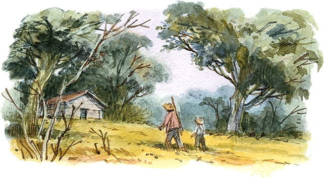 Он меня не отпускал ни на минуту, и удрать не было никакой возможности. Жили мы в этой старой хибарке, и он всегда запирал на ночь дверь, а ключ клал себе под голову. У него было ружье – украл, наверно, где-нибудь, – и мы с ним ходили на охоту, удили рыбу; этим и кормились. Частенько он запирал меня на замок и уезжал в лавку мили за три, к перевозу, там менял рыбу и дичь на виски, привозил бутылку домой, напивался, пел песни, а потом колотил меня. Вдова все-таки разузнала, где я нахожусь, и прислала мне на выручку человека, но отец прогнал его, пригрозив ружьем. А в скором времени я и сам привык тут жить, и мне даже нравилось – все, кроме ремня.