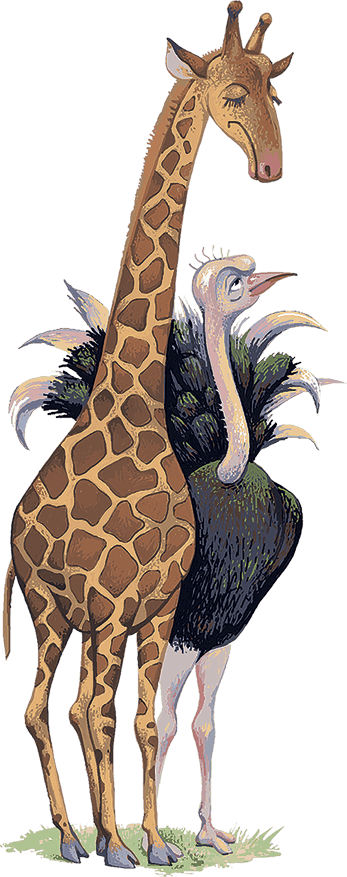 Он спросил свою высоченную тётю Страусиху, почему у неё именно так растут на хвосте перья, и высоченная тётя Страусиха надавала ему по заду своим твёрдым-претвёрдым клювом. Он спросил своего долговязого дядю Жирафа, почему у него такая пятнистая шкура, и долговязый дядя Жираф надавал ему по заду своим твёрдым-претвёрдым копытом. Но его продолжало переполнять неуёмное любопытство. Он спросил свою необъятную тётушку Бегемотциху, почему у неё такие красные глаза, и необъятная тётушка Бегемотиха надавала ему по заду своей тяжелой-претяжелой пяткой; и он спросил своего волосатого дядюшку Павиана, почему у дыни именно вот такой вкус, и волосатый дядюшка Павиан надавал ему по заду своей волосатой-преволосатой лапой. И всё равно его переполняло неуёмное любопытство. Он спрашивал обо всём, что видел, слышал, чувствовал, чего касался, что нюхал или трогал, и все его тети и дяди в ответ давали ему по заду. И всё равно его переполняло неуёмное любопытство.