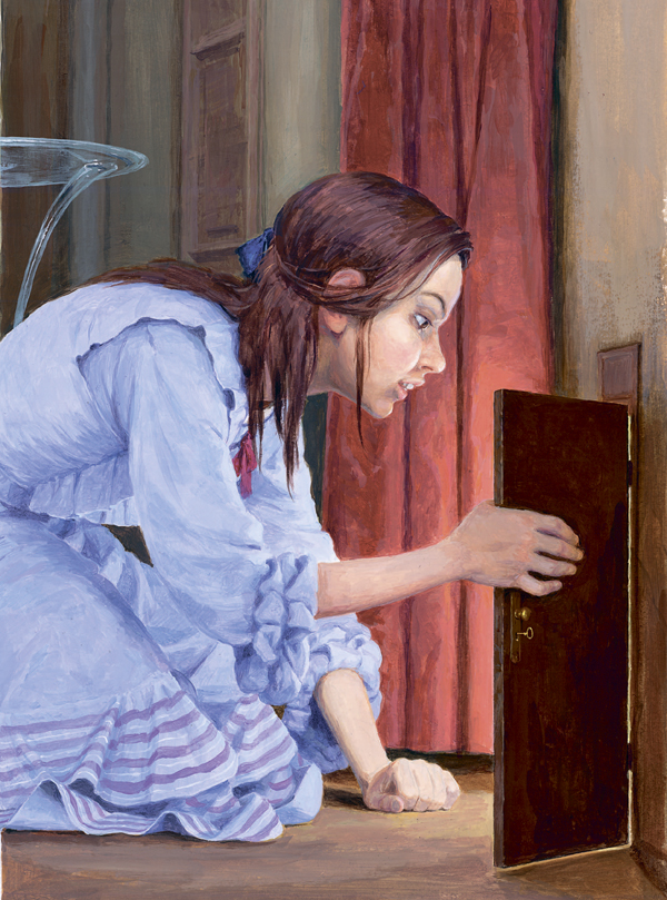 И она подбежала к дверце. Но увы! Дверца опять была заперта, а золотой ключик так и лежал на стеклянном столе.