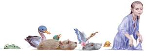 И в самом деле, надо было вылезать. В луже становилось все теснее от всяких птиц и зверей, упавших в нее. Там были Робин Гусь, Птица Додо, Попугайчик Лори, Орленок Эд и всякие другие удивительные существа17. Алиса поплыла вперед, и все потянулись за ней к берегу.