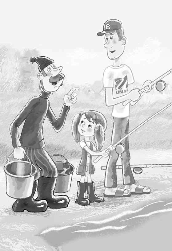 Сидел он и сидел упрямо, чтобы тайну рыболовецкую узнать. Особенно его волновало, зачем у них третья удочка. Она на берегу лежит, от неё леска в воду уходит. Только никто этой удочкой не пользуется.