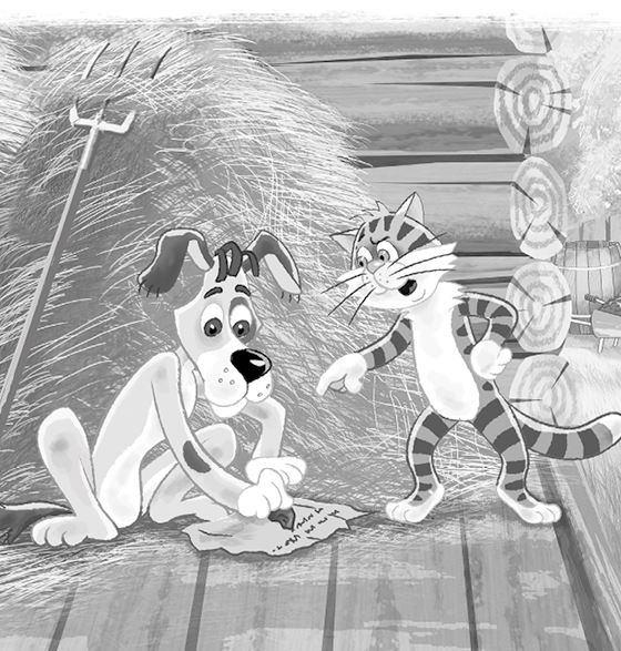 В этот же вечер кот Матроскин и Шарик собрались на сеновале – список недостатков для Кати составлять.