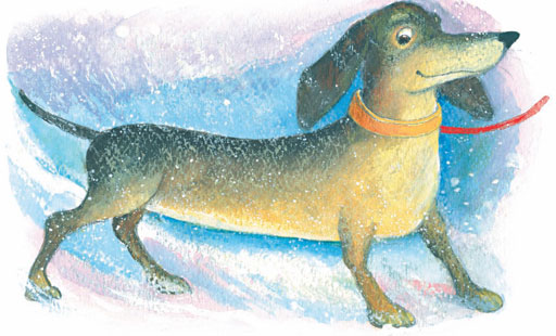 Вася шёл по улице. На углу он увидел длинную-предлинную таксу. Она была похожа на колбасу на четырёх лапах.