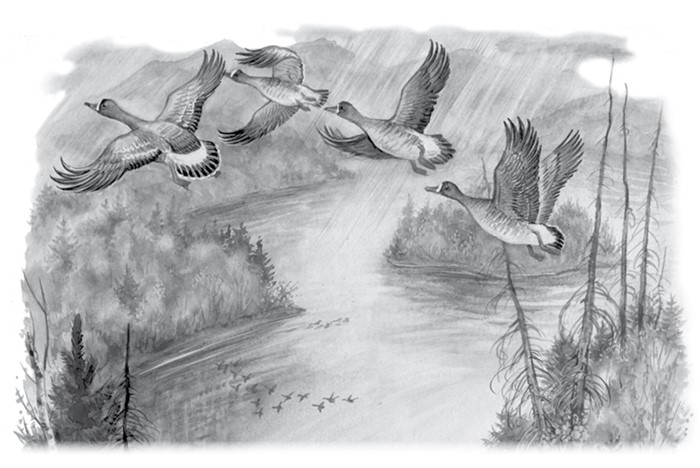 …Опрятней модного паркетаБлистает речка, льдом одета.Мальчишек радостный народКоньками звучно режет лед;На красных лапках гусь тяжелый,Задумав плыть по лону вод,Ступает бережно на лед,Скользит и падает; веселыйМелькает, вьется первый снег,Звездами падая на брег.Зимнее утро