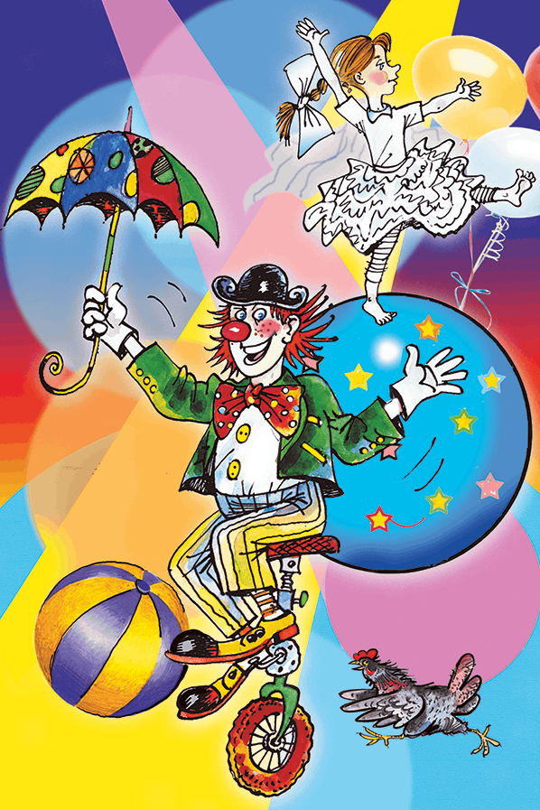 И вдруг из-за красной занавески вышел целый отряд каких-то людей, одетых очень красиво – в красные костюмы с жёлтыми полосками. Они встали по бокам занавески, и между ними прошёл их начальник в чёрном костюме. Он громко и немножко непонятно что-то прокричал, и музыка заиграла быстро-быстро и громко, и на арену выскочил артист-жонглёр, и началась потеха. Он кидал шарики, по десять или по сто штук вверх, и ловил их обратно. А потом схватил полосатый мяч и стал им играть… Он и головой его подшибал, и затылком, и лбом, и по спине катал, и каблуком наподдавал, и мяч катался по всему его телу как примагниченный. Это было очень красиво. И вдруг жонглёр кинул этот мячик к нам в публику, и тут уж началась настоящая суматоха, потому что я поймал этот мяч и бросил его в Валерку, а Валерка – в Мишку, а Мишка вдруг нацелился и ни с того ни с сего засветил прямо в дирижёра, но в него не попал, а попал в барабан! Бамм! Барабанщик рассердился и кинул мяч обратно жонглёру, но мяч не долетел, он просто угодил одной красивой тётеньке в прическу, и у неё получилась не причёска, а нахлобучка. И мы все так хохотали, что чуть не померли.