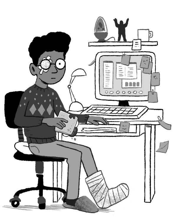 Познакомьтесь, это Джулио. Джулио – ботан. Точнее говоря, он относится к ещё более специфической категории: гик, повёрнутый на науке. Помните чуваков из кино в выпендрёжных очках, с чудаковатой причёской, которым достаточно взять в руки тостер, чтобы подключиться к внутренней сети Пентагона и предотвратить ядерную войну? Так вот: Джулио не таков. Куда там: тостер ему однажды на ногу упал, так что пришлось месяц ходить на костылях. Зато он носит очки (и ещё часто пластырь на одном глазу) и знает кучу всего о законах физики.