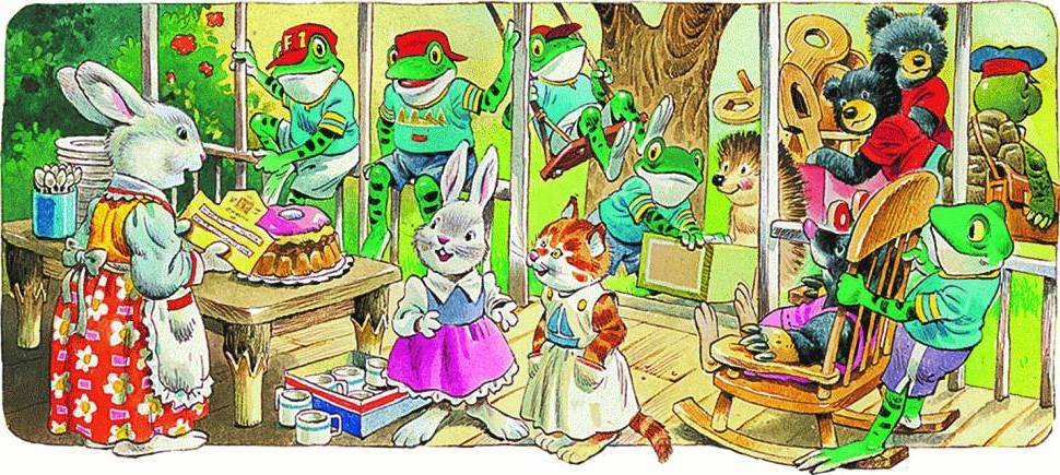 Крольчиха ничего не сказала, но про себя подумала: «Интересно, где Пушинка найдёт все эти вещи?» Всё же она начала печь торт, а папу-кролика попросила отправить телеграмму с приглашением всех десяти крольчат.