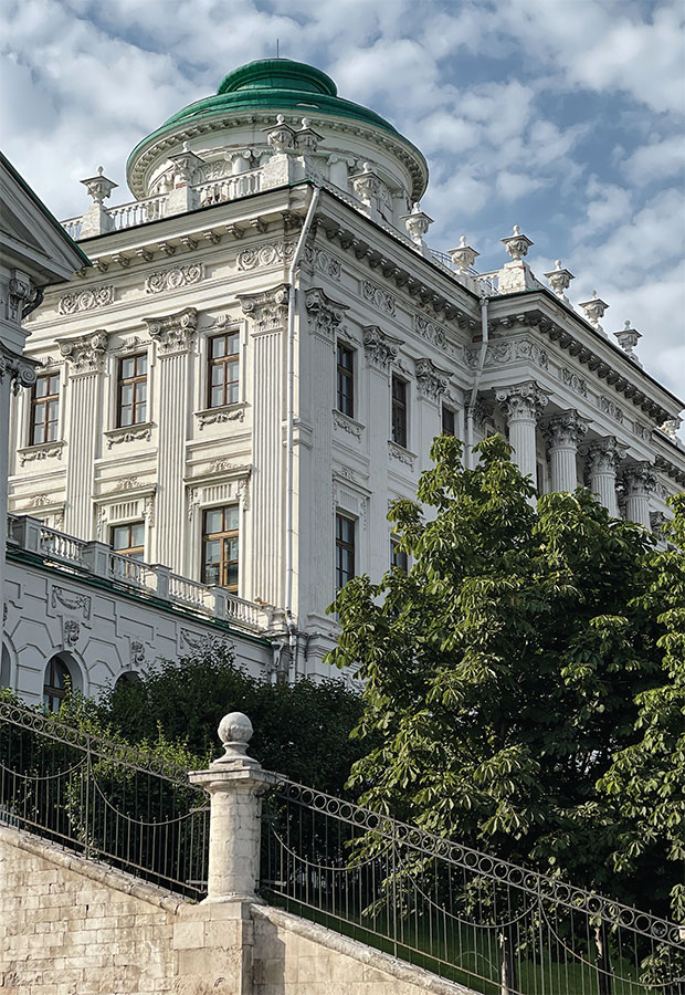 Мое увлечение московскими особняками началось… со свадьбы. Когда мой муж сделал мне предложение и мы стали подавать заявление, узнали, что в Москве расписывают не только в ЗАГСе, но и на выездных площадках – на ипподроме, в гостинице «Националь», на стадионе «Лужники» и даже в библиотеке искусств имени А. П. Боголюбова. Это бесплатно, если не считать стандартную госпошлину, и есть свободные места – вот в библиотеку разобрали, а в «Национале» напротив Кремля остались! И это так меня удивило, что тут же захотелось посмотреть библиотеку, тем более что в ней проводят экскурсии. Так в мае 2021 года я оказалась в голубой гостиной бывшей усадьбы племянника Павла Третьякова Николая. На стенах танцевали лепные купидончики, вокруг которых ползли гирлянды цветов и свисали музыкальные инструменты.