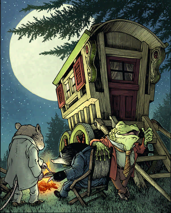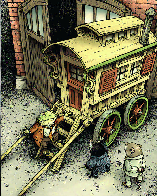 Заинтригованный и взволнованный, Крот живо поднялся по ступеням в кибитку вслед за Жабом. Крыс же только усмехнулся и, засунув лапы поглубже в карманы, не двинулся с места.