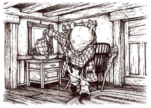 Друзьям показалось, что целую вечность они терпеливо ждали, притоптывая замёрзшими лапами и пытаясь согреться. Наконец послышались шаркающие шаги, приближавшиеся к двери: похоже, хозяин надел стоптанные шлёпанцы, которые к тому же были ему велики. Проницательный Крот высказал это предположение вслух, и именно так и оказалось.