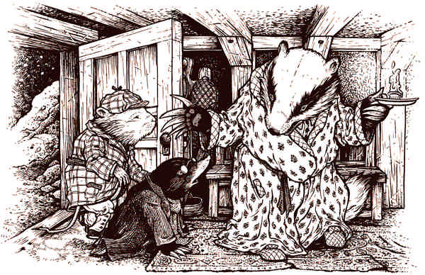 – Крыс, мой дорогой малыш! – обрадовался Барсук. – Входите же скорее. Вы, должно быть, окоченели. Подумать только! Заблудились в Диком лесу, да притом ночью! Входите, входите.
