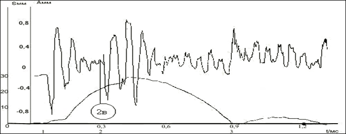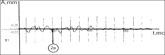 Рис. 12. Осциллограмма перемещений стреляющего агрегата с записью колебаний дульной части ствола автомата АН-94.