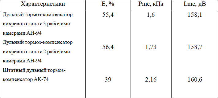 Таблица 4. Сравнительные характеристики дульных устройств автоматов АК-74 и АН-94