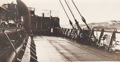 Здесь следует пояснить, что это за штука такая – штуртрос. Машинное отделение судна расположено в середине под надстройкой (жилые помещения), а перо руля под кормой. Чтобы можно его поворачивать вправо-влево с мостика, соединяют со штурвалом металлическим тросом или цепью. Он тянется по обоим бортам до кормы (см. фото) и общий вес его, наверно, под сотню килограммов. Штурвалом его, конечно, сдвинуть тяжело с места, поэтому он синхронно соединен с машинным отделением. Машина тянет его то в одну сторону, то в другую по команде с мостика. Штурвал крутится без усилий. Обрыв штуртроса делает судно неуправляемым. Ситуация катастрофическая. Большую волну можно выдержать, поставив судно носом к ветру, иначе развернет боком и перевернет, если центр тяжести высоко. Не однажды парусники ложились на бок. Через несколько минут вся палубная команда столпилась в коридоре у задраенной наглухо входной двери. Боцман открыл ее и морская вода, как из опрокинутой бочки, хлынула с палубы в коридор. Темень, глаз выколи, свист ветра и глухие удары волн в левый борт, его уже развернуло к волнам, которые с невероятным шумом перекатывались через палубу. На мостике включили прожектор. От каждой волны пароход сильно кренился на борт, правый фальшборт почти доставал до воды, но перевернуть не могли – груженный сидел глубоко. У правого борта на палубе было принайтовлено несколько бочек с растительным маслом. Волны в ярости сорвали крепления и, когда вода накрывала их, они всплывали, выглядывая из воды сантиметров десять, и какая-нибудь торжественно уплывала за борт. Цепь штуртроса лопнула недалеко от надстройки по левому борту. Звенья цепи толстые, рассчитанные не на одну тонну, но удар волны в бампер руля, когда он оголялся, превышал их. Прочность цепи определяется по самому слабому звену. Подбежали к штуртросу, когда схлынула очередная волна. Командовал боцман.