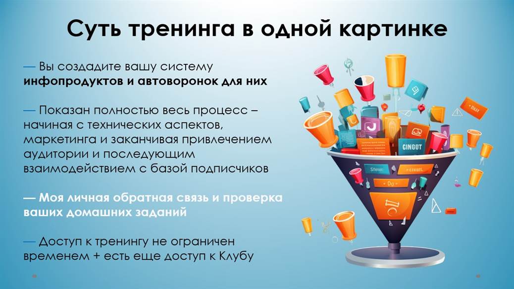Уже много лет я занимаюсь инфомаркетингом и уже много лет создаю разнообразные курсы, тренинги, семинары, разнообразный контент.