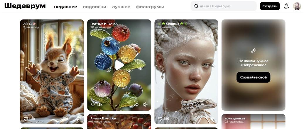 А еще есть Шедеврум от Яндекса – shedevrum.ai