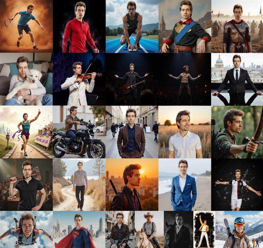 Можно создавать как картинки, так и делать фотографии с вашим лицом.