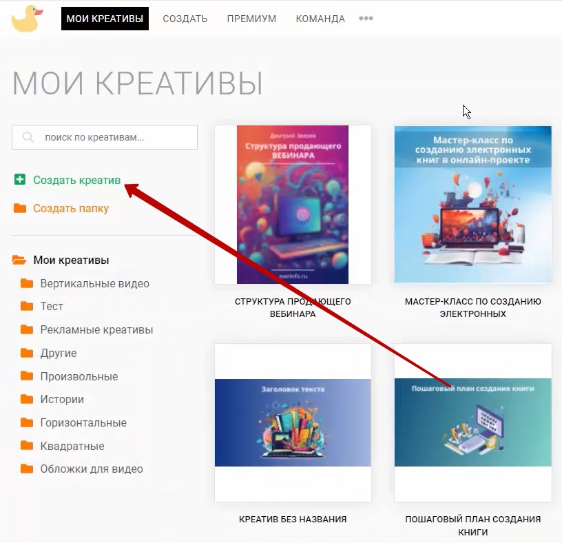 -– После регистрации вы попадете в ваш личный кабинет, создайте новый креатив:
