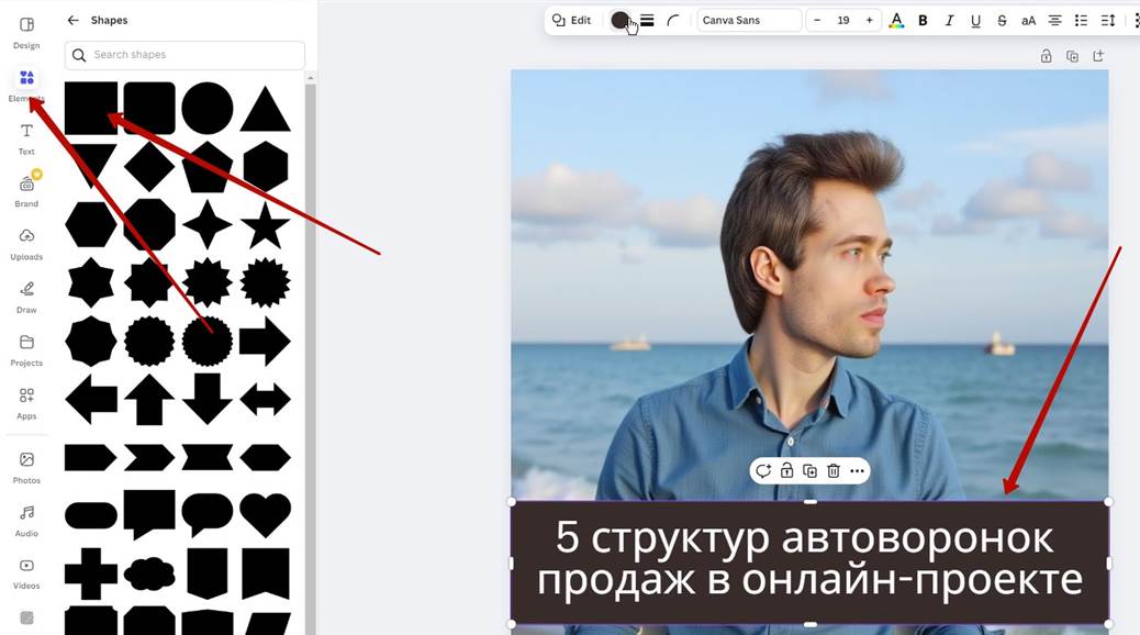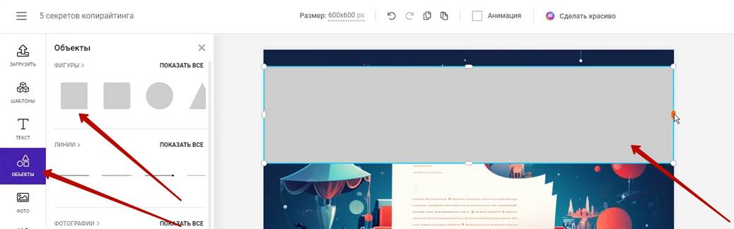 -– Чтобы текст лучше читался, выберите фигуру прямоугольник и добавьте над текстом: