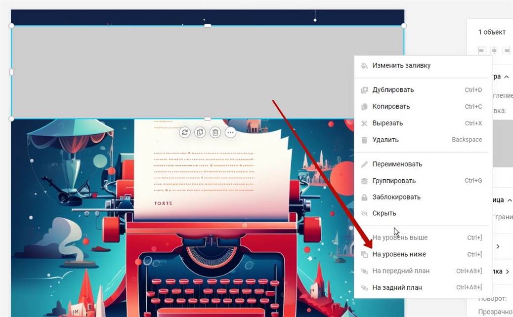 -– Кликните правой кнопкой мыши по прямоугольнику и переместите его под текст: