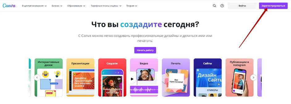 После регистрации вы попадете в ваш личный кабинет, здесь будут отображаться ваши созданные и дизайны и есть множество шаблонов.