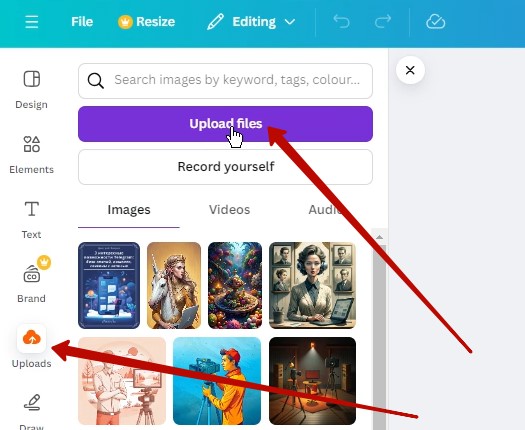 -– После загрузки оно отобразится в загруженных файлах, кликните по нему, чтобы добавить на холст и растяните: