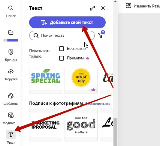 -– А далее аналогичным образом загрузите горизонтальную картинку и добавьте текст, например – вот так: