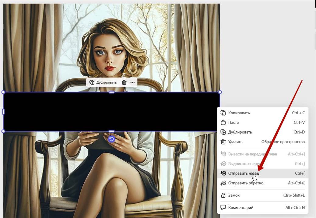 -– Кликните правой кнопкой мыши по прямоугольнику и переместите его под текст: