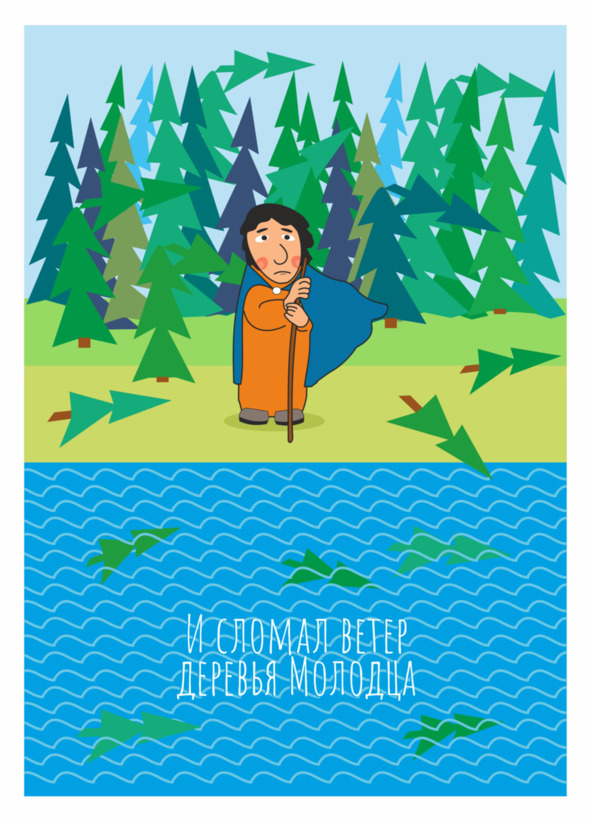 Лес Молодца, где росли только высокие и ветвистые деревья, продувался так сильно, что стволы согнулись до самой земли и сломались. Лес горбатого Старца, где росли разные деревья, остался невредим: высокие деревья прикрыли от ветра маленькие сверху, а меленькие закрыли высокие снизу.