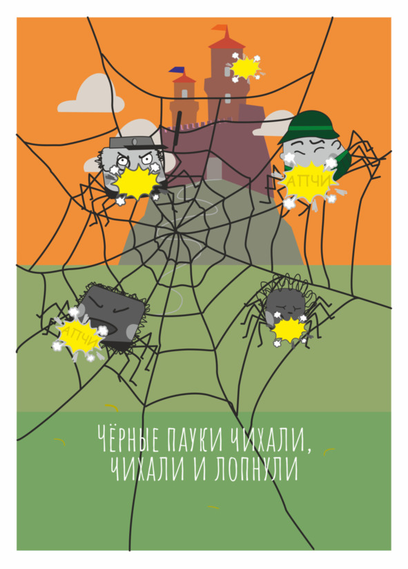 – Подданные мои, успокойтесь! Чёрные пауки хоть и вскрывают почтовые конверты, но письма не читают, так как грамоте не обучены. А делают они это для защиты жителей города от блох в конвертах.