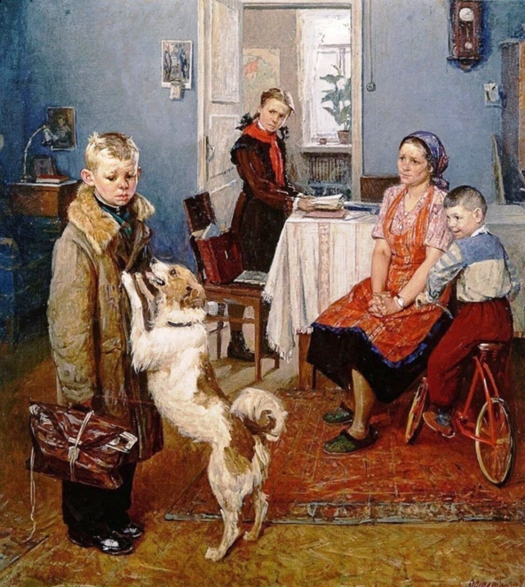 Картина «Опять двойка». И скрывать нечего, бывало по физике схватывал при беглой проверке знаний на уроке, не выходя к доске. Прокопий Васильевич умел заставить учиться должным образом.