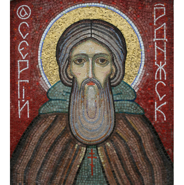 Сергий Радонежский, мозаичная икона, работа Сергея Голышева